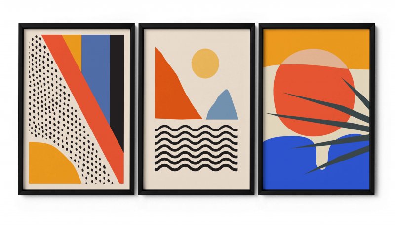 Quadros impressos em tecido por meio de transferência térmica, com cores vivas, alta qualidade e durabilidade, colado em MDF 3mm, com moldura de madeira revestida em gesso de 2cm de face e 1cm de altura.