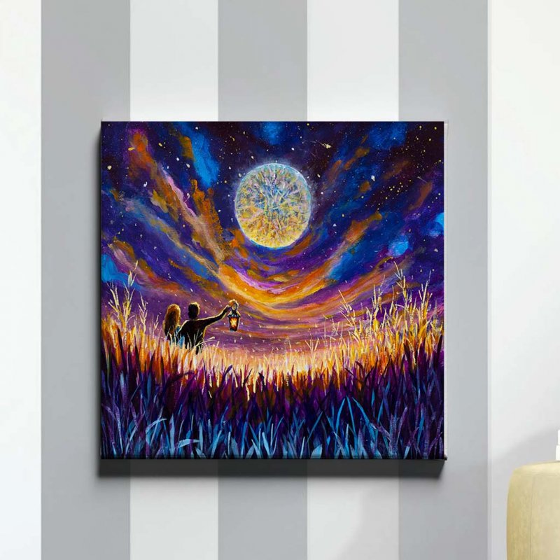 Tecido esticado sob chassi de madeira maciça tratada, especifica para essa finalidade, fixação do tecido no chassi é realizada com grampo rígido de 6 mm, o fechamento é realizado com fita gomada de alta aderência de 5cm de largura juntamente com papel craft para total vedação do fundo, utilizamos o pendurador serrilhado para maior facilidade de ajuste do quadro na parede.