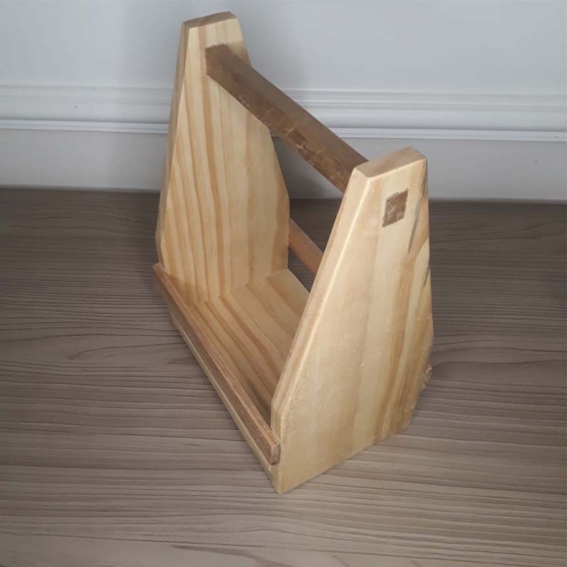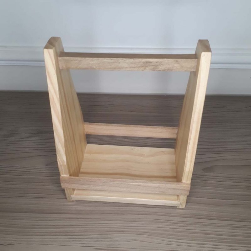 Confeccionada em madeira maciça, trabalho artesanal medindo 28cm de altura por 21 cm de largura por 14 cm de profundidade (medidas externas)