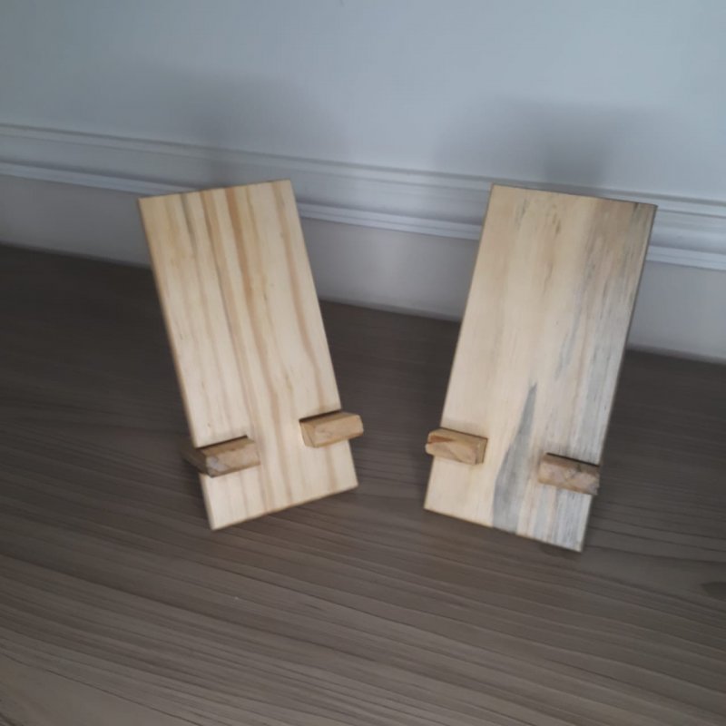 Porta Celular em madeira maciça medindo 9cm de largura por 20cm de altura