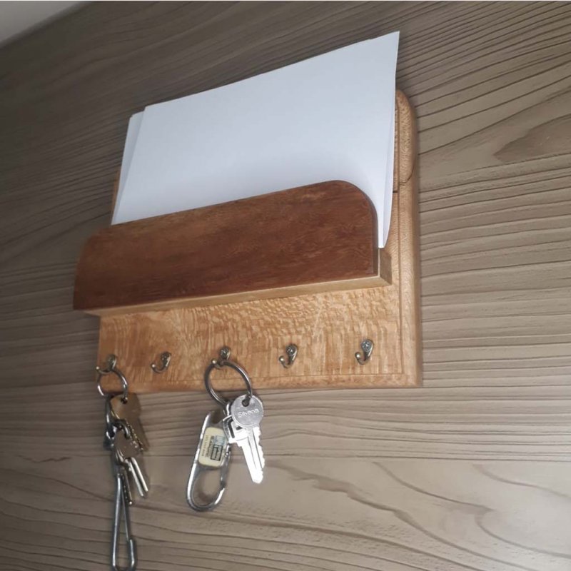 Porta chaves de parede com 5 ganchos mais base para guardar documentos ou correspondências medindo 20 cm de altura por 25cm de largura