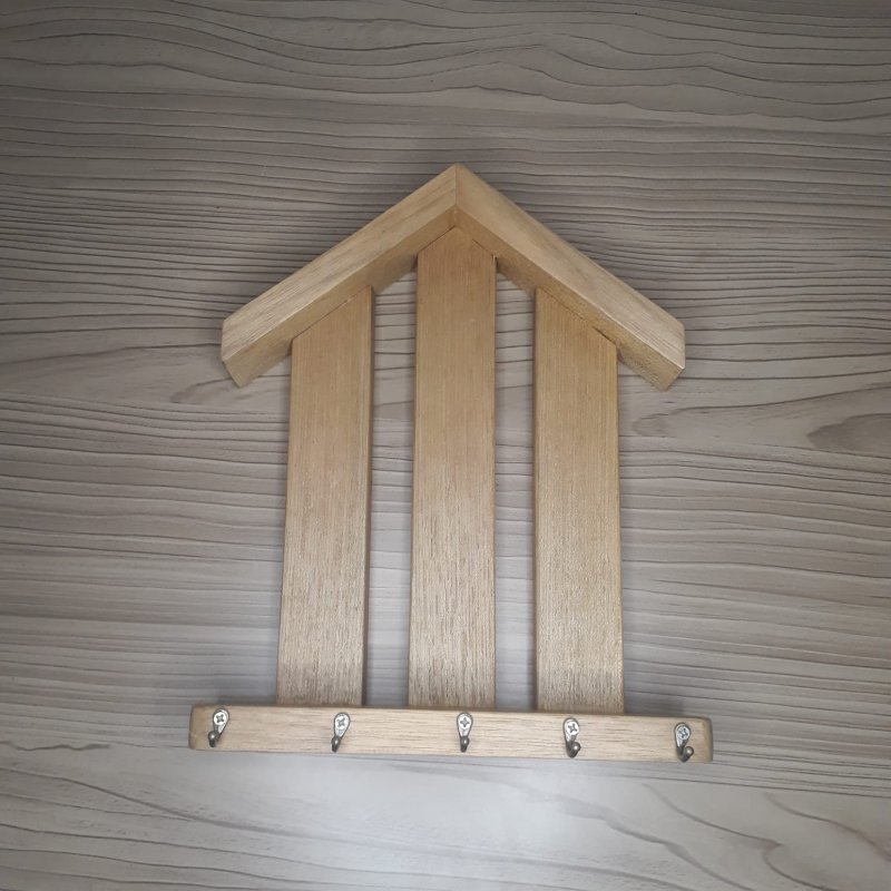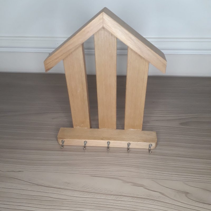 Porta Chaves em madeira maciça medindo 28cm de altura por 22cm de largura, com 5 ganchos.