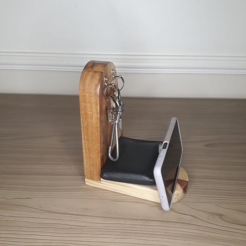 Porta chaves e porta celular confeccionado em madeira maciça medindo 21cm de altura 13cm de largura 15cm de profundidade
