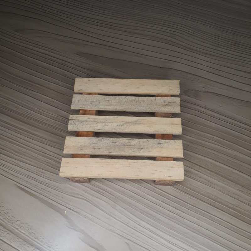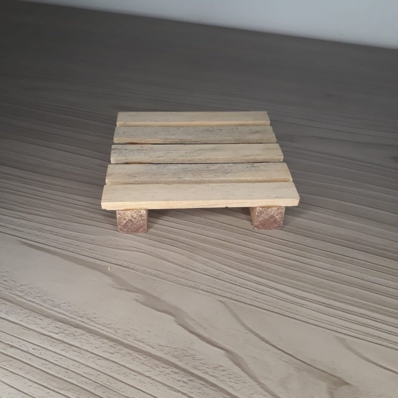 Mini palete decorativo de madeira medindo 11cm por 11cm com2cm de altura