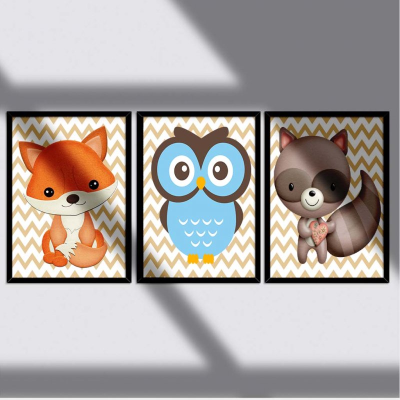 Quadros impressos em tecido por meio de transferência térmica, com cores vivas, alta qualidade e durabilidade, colado em MDF 3mm, com moldura de madeira revestida em gesso de 2cm de face e 1cm de altura.