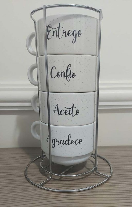 Torre de quarto canecas, entrego, confio, aceito e agradeço