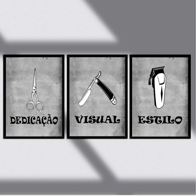 Trio de quadros Barbearia(dedicação,estilo,visual)
