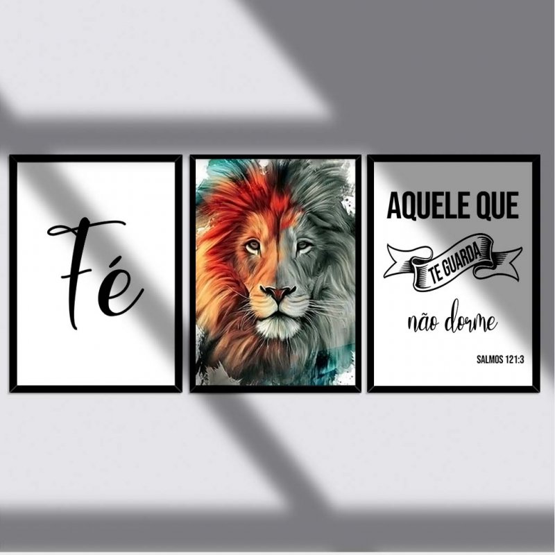 Quadros impressos em tecido por meio de transferência térmica, com cores vivas, alta qualidade e durabilidade, colado em MDF 3mm, com moldura de madeira revestida em gesso de 2cm de face e 1cm de altura.