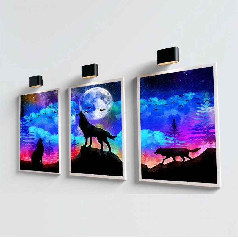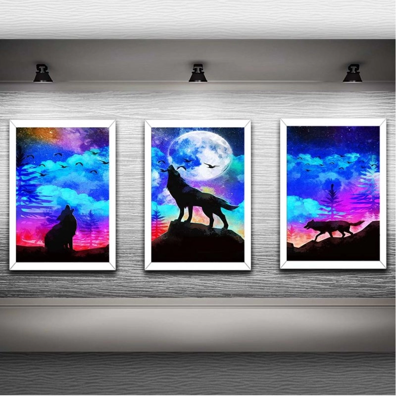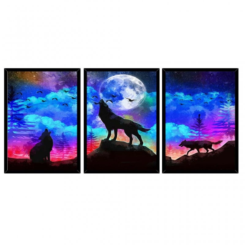 Quadros impressos em tecido por meio de transferência térmica, com cores vivas, alta qualidade e durabilidade, colado em MDF 3mm, com moldura de madeira revestida em gesso de 2cm de face e 1cm de altura.