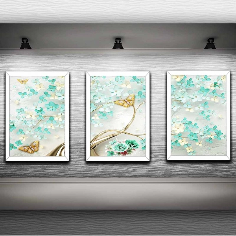 Quadros impressos em tecido por meio de transferência térmica, com cores vivas, alta qualidade e durabilidade, colado em MDF 3mm, com moldura de madeira revestida em gesso de 2cm de face e 1cm de altura